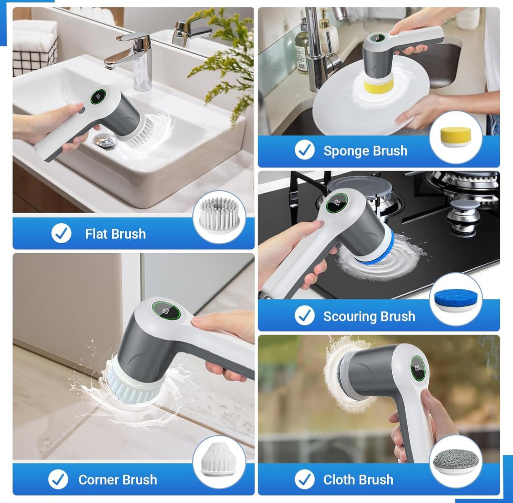 6 replaceable heads: comes with multiple brush heads so you can match the tool to the surface (great for corners, flat areas, and detail cleaning).